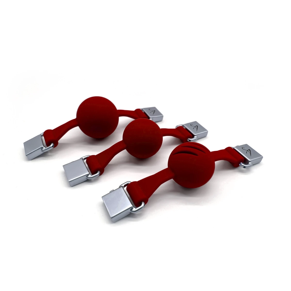 Der Knebelball aus rotem, 100% medizinischem Silikon sorgt für einen herrlich ausgefüllten Mundraum. Er ist in zwei unterschiedlichen Durchmessern erhältlich: 40 mm für Anfänger und Subbies mit kleinem Mund oder 45 mm für fortgeschrittenere, die gerne den Mund etwas voller haben. Der Knebelball ist dabei sehr fest und gibt kaum nach.