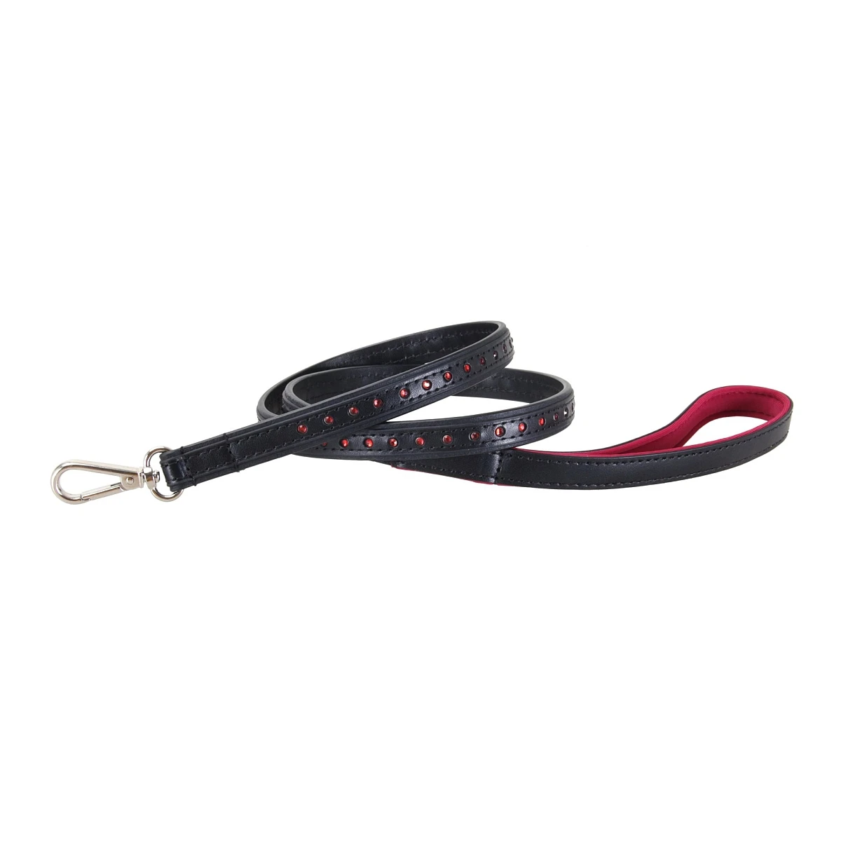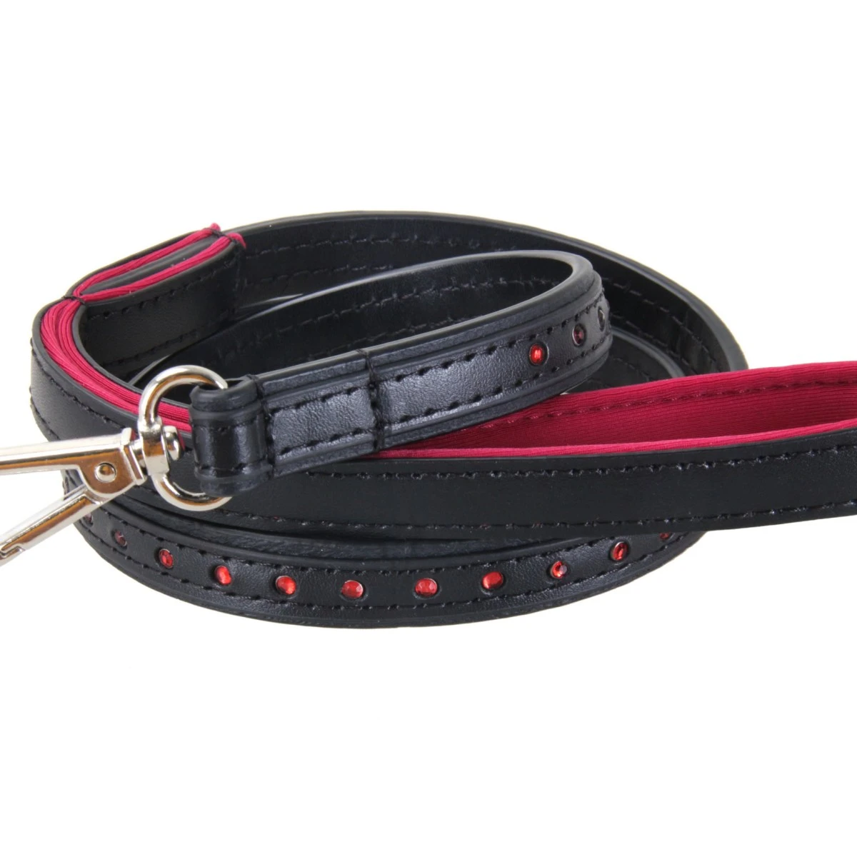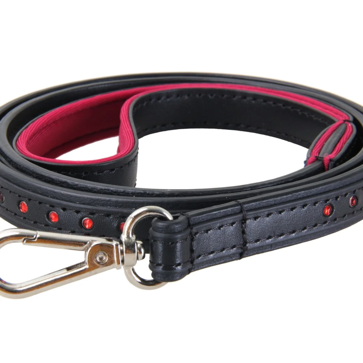 Edle BDSM-Leine in einzigartigem Design aus hochwertigem Leder und trendiger Farbkombination Schwarz/Bordeauxrot mit edlen Strasssteinen.