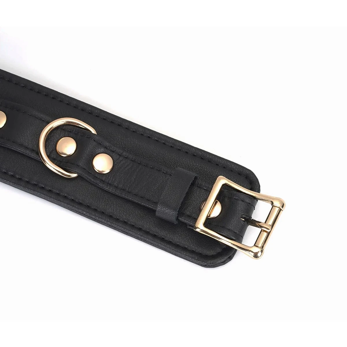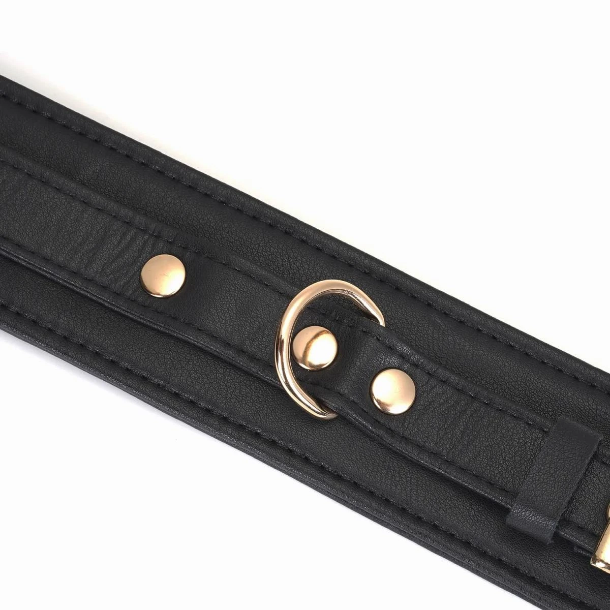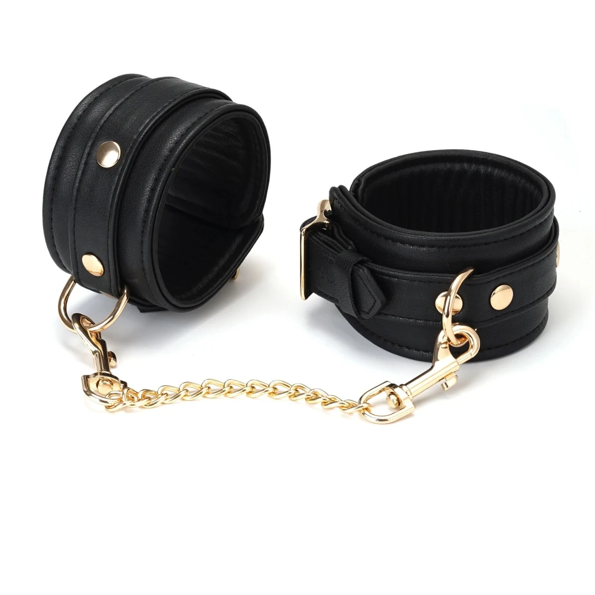 Die LiebeSeele®-Fußfesseln lassen sich dank der Rollschnalle aus nickelfreiem, goldfarbenem Metall individuell auf den benötigten Umfang zwischen 21 und 31 cm einstellen, sind also auch für schmälere Fußgelenke geeignet. Ein D-Ring sorgt für die nötige Funktionalität. An ihm kann man unter anderem die beiliegende Verbindungskette (Länge ca. 24,5 cm) mit zwei Karabinern befestigen oder auch beliebige andere Karabiner und Seile zum Fixieren anbringen.