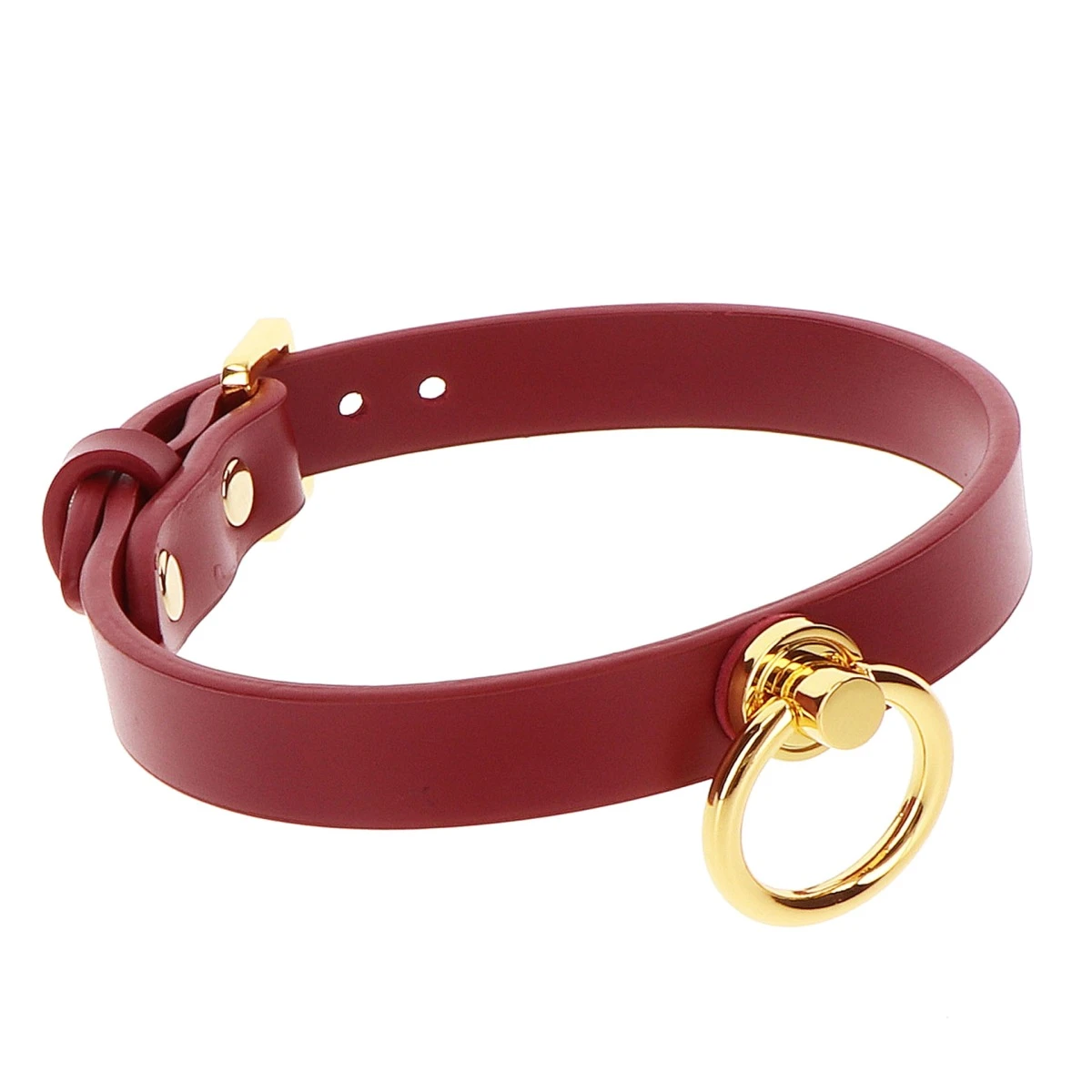 Halsband in bordeauxrot mit rundem Ring & goldfarbenen Beschlägen