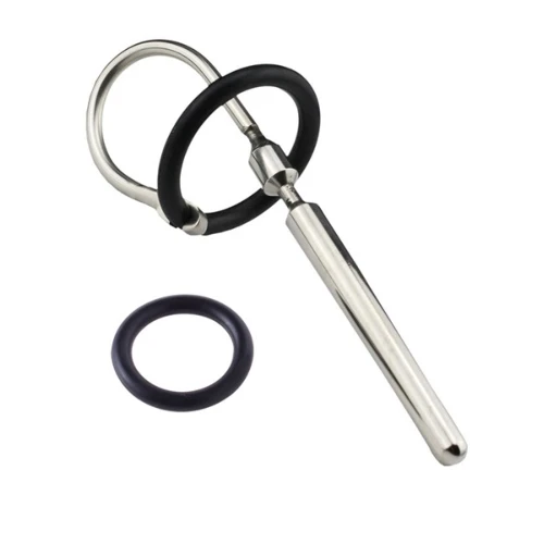 Zur Anwendung: Der Dilator wird in die Harnröhre eingeführt. Gehe dabei achtsam vor. Wenn Du soweit drin bist, schiebst Du den Gummiring über den Glans, damit der Dilator den nötigen Halt hat und der Ring Deine Eichel stimulieren kann.