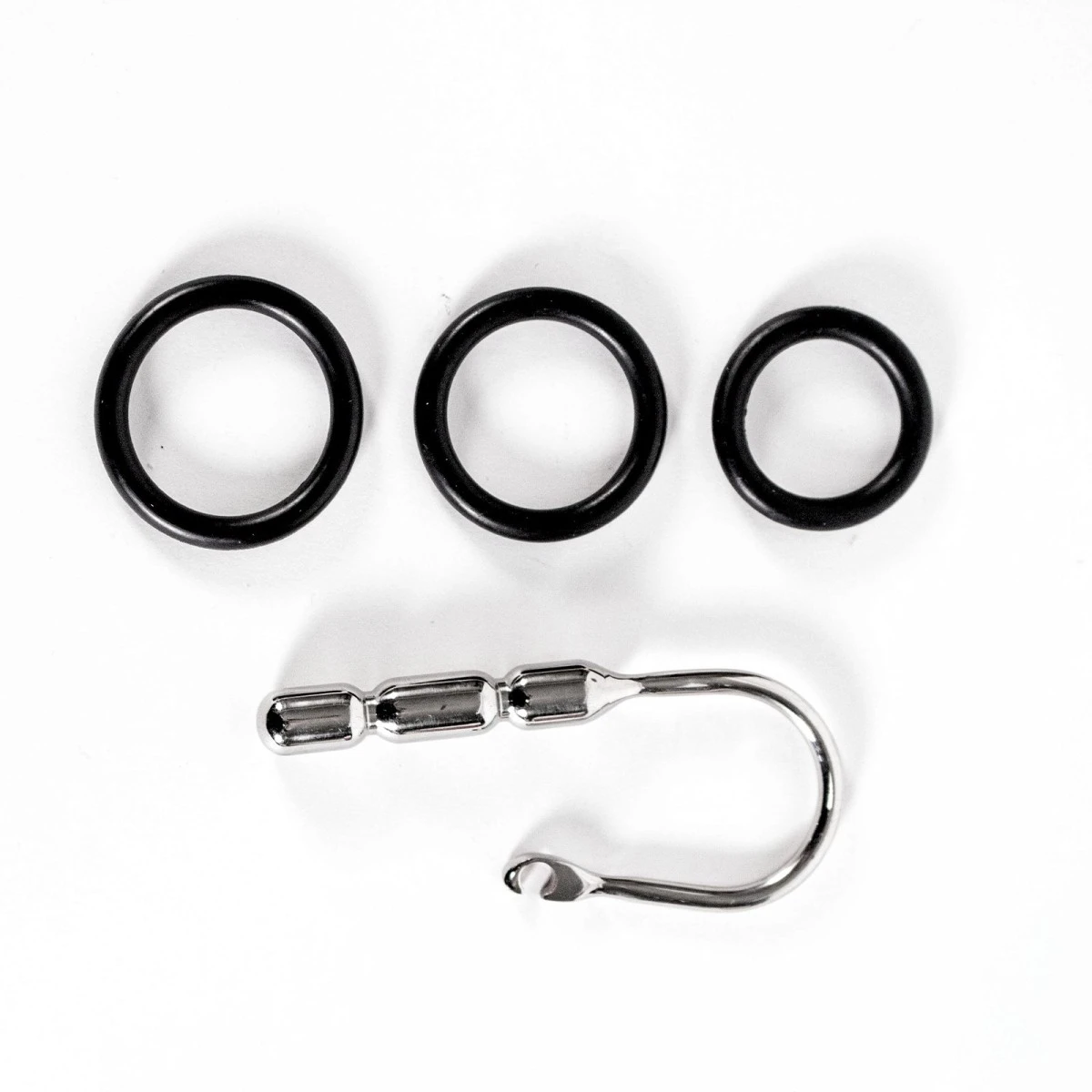 Der dicke Penisplug hat 3 auswechselbare Ringe aus Gummi in unterschiedlichen Durchmessern. Dadurch erfolgt die Fixierung am Eichelkranz (Glans). Durch das flexible Material, das den Glans umfasst, erfährst du zusätzliche Stimulation und durch die drei unterschiedlichen Ringe findest du genau die passende Größe.