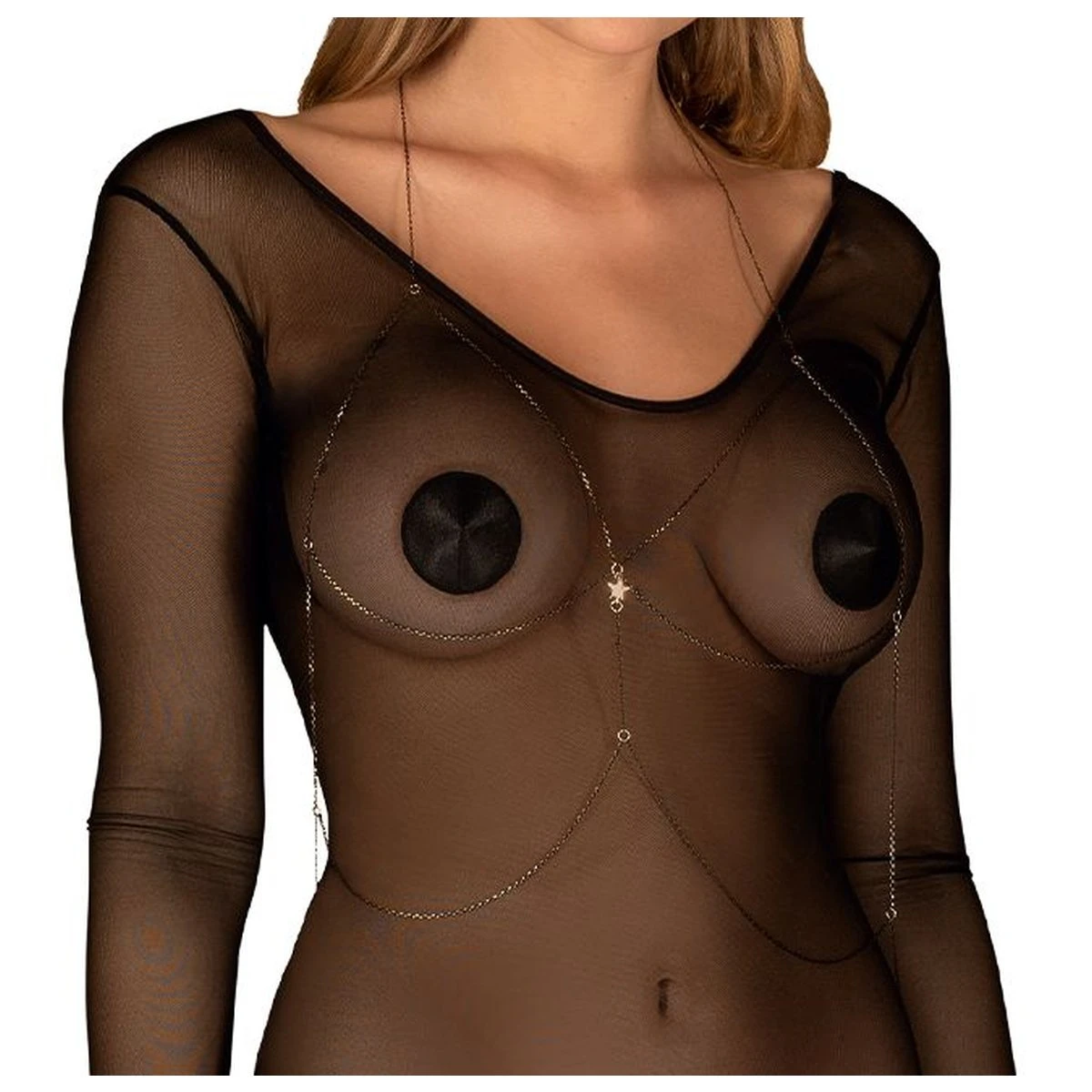 Pure Sinnlichkeit umgibt dich, wenn du die »Body Chain Gold« trägst. Die Körperkette mit den schwarz-goldfarbenen Kettengliedern ist auf nackter Haut ebenso sexy wie auf dem schwarzen Kleid oder auf deinen Dessous. Besonders sinnlich kann es sich für dich anfühlen, wenn du sie auf blanker Haut trägst und das „Netz“ aus grazilen Ketten um dich herum bei jeder Bewegung spüren kannst.
