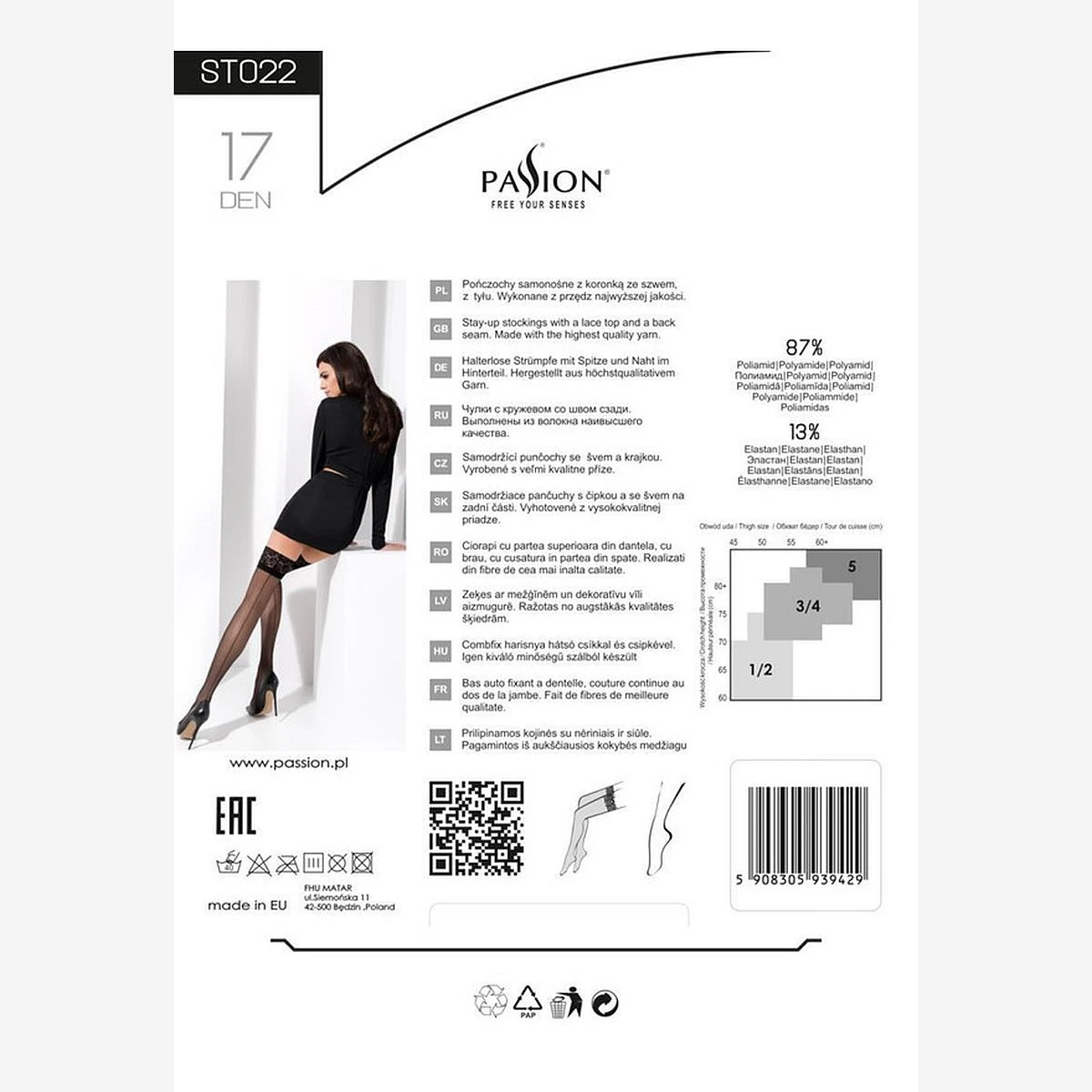 Die halterlosen Strümpfe von Passion sind mit 17 DEN besonders fein: hauchdünn und durchsichtig. Die erotische Naht lässt das Bein schlank und lang wirken. Die Stay Up Stockings haben unter der schmalen Spitze ein Silikonband mit dem sie sanft an der Haut haften, so halten sie auch ohne Strapsgürtel..