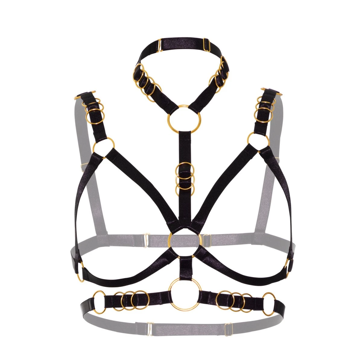 Der extravagante Open Cup BH aus dehnbaren Bändern in Kombination mit den goldfarbenen, nickelfreien Schnallen und Ringen besticht durch hervorragende Verarbeitung und erotische Bondage-Optik. Du wirst die erregende Berührung der elastischen Bänder genießen, während der Busen frei bleibt.