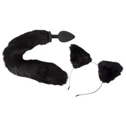 Der Katzenschwanz ist fest mit dem Plug verbunden. Das schwarze Kunstfell schimmert glänzend bei jeder Bewegung und sieht schon fast aus wie bei einer echten Katze. Auch die Ohren des Haarreifs sind aus schwarzem Kunstfell, während das Innere der Ohren in unschuldigem, zartem Rosa gehalten ist. Der Haarreif besteht aus Metall, er lässt sich flexibel an jede Kopfform anpassen. Ohne Öhrchen angewandt kann der Schwanz auch als Dogtail dienen – der Phantasie sind keine Grenzen gesetzt.