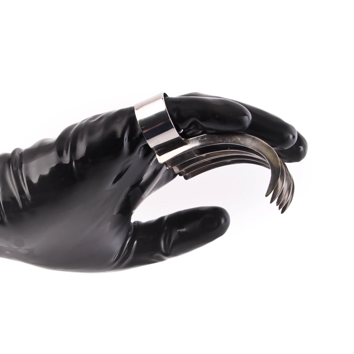 Die Bärenklaue oder Bear-Claw sorgt mit ihren vier Haken für ein sehr intensives Gänsehautgefühl. Die Klaue wird von unten über Zeige- und kleinen Finger geschoben und folgt der Biegung der Finger. So kann man die Klaue richtig gut führen. Du kannst sanft streicheln, stark zudrücken oder Linien auf die Haut zeichnen. Vor allem bei geschlossenen oder verbundenen Augen sind diese sinnlichen Spiele ausgesprochen lustvoll.
