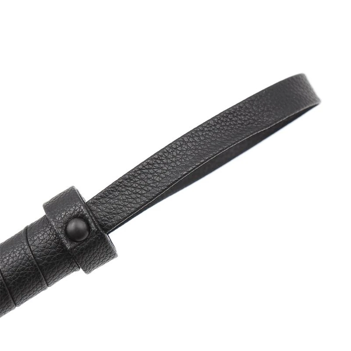 Der Griff ist mit Kunstleder umwickelt und endet mit einer Schlaufe aus dem gleichen Material.