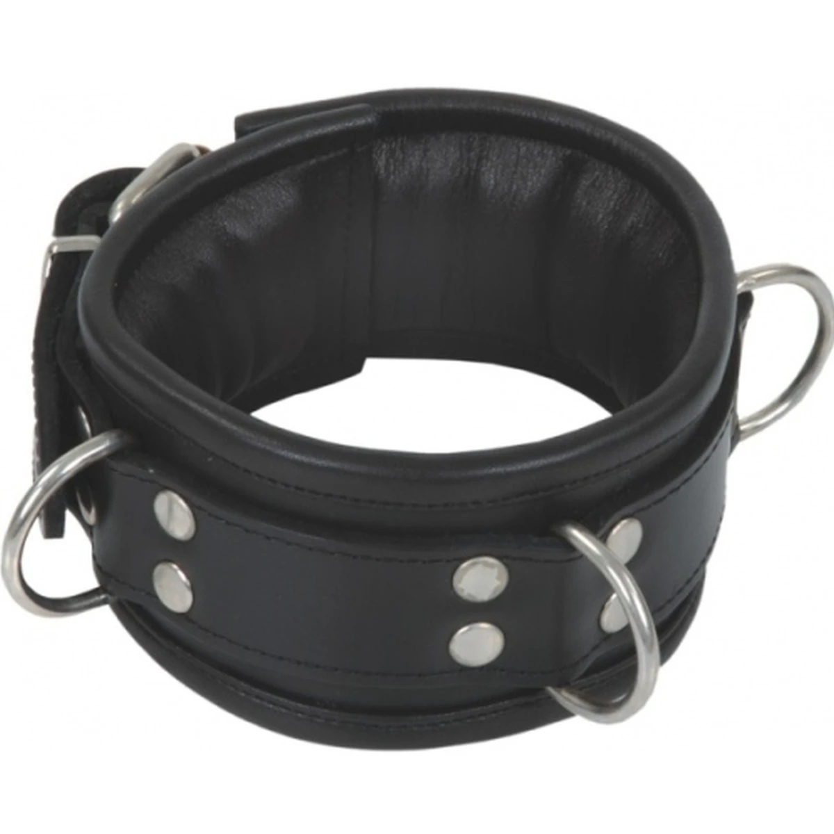 Dieses Halsband ist für Leute mit stärkerem Hals-/Nackenbereich, da es extra lang ist. Die drei stabilen D-Ringe sind jeweils mit zwei Nieten pro Seite gesichert, was ein ausreißen fast unmöglich macht. Es ist extra weich und dick gepolstert, wodorch es angenehm zu tragen ist. Auch der umnähte Rand erhöht den Tragekomfort nochmals. Generell ist dieses Halsband sehr professionell und hochwertig vernäht.