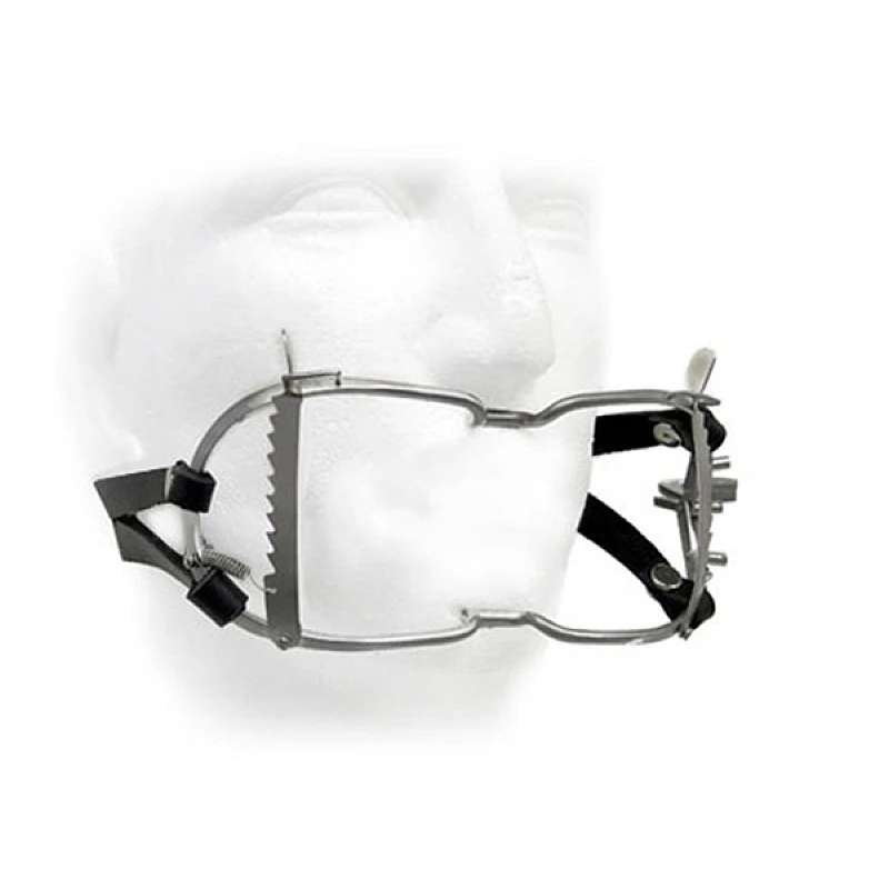 Ein Eyecatcher der etwas heftigeren Art. Der Mundsperrer Whitehead aus Edelstahl hat zwei seitliche Sperrmechanismen. Er ist dadurch stabil und dennoch variabel verstellbar. Die Lautstärke dämmt er nicht, aber demütigendes Sabbern ist mit diesem Instrument fast schon ein Muss. Zudem eignet er sich vorzüglich dazu, Sachen in den Mund einzuführen