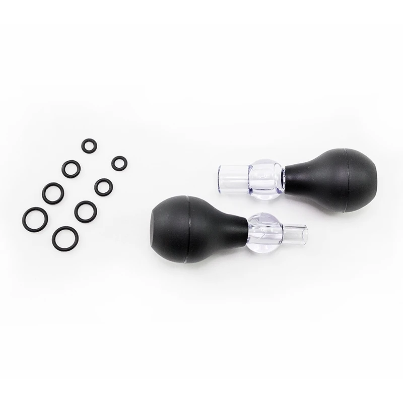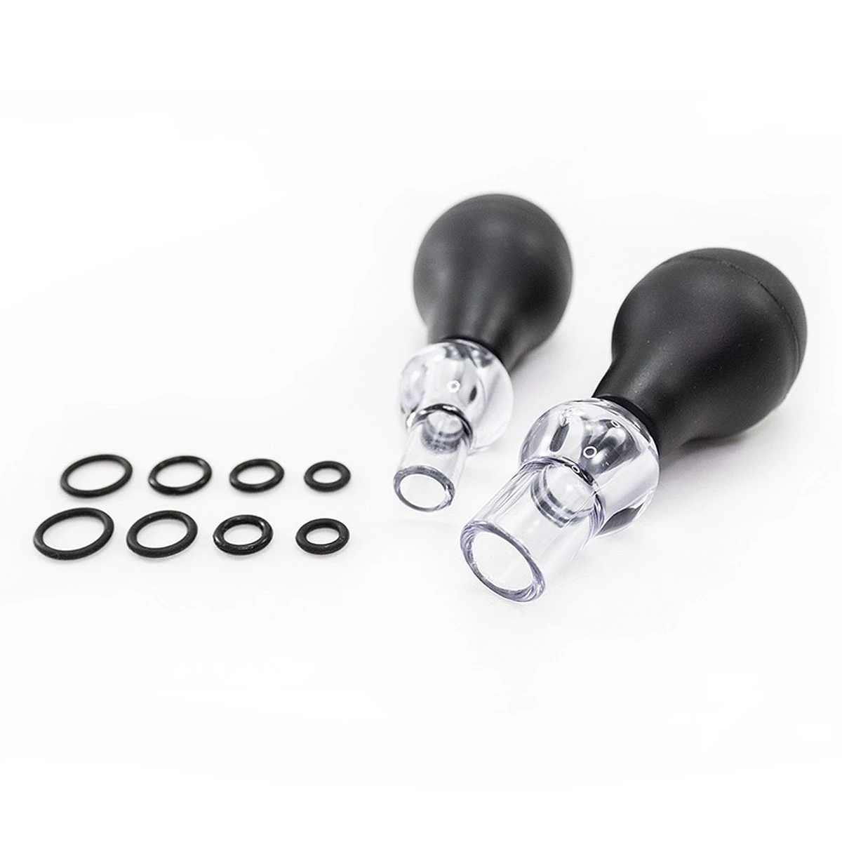 Zwei Nippelsauger mit Gummringen im Set. Die Nippel werden herrlich empfindlich, wenn sie unter leichtem Druck stehen und dabei anschwellen. Sie lassen sich dann viel besser quälen und erotisieren. Zum anderen sieht es für viele einfach nur geil aus, wenn sich unter dem T-Shirt die Nippel richtig gut abzeichnen.