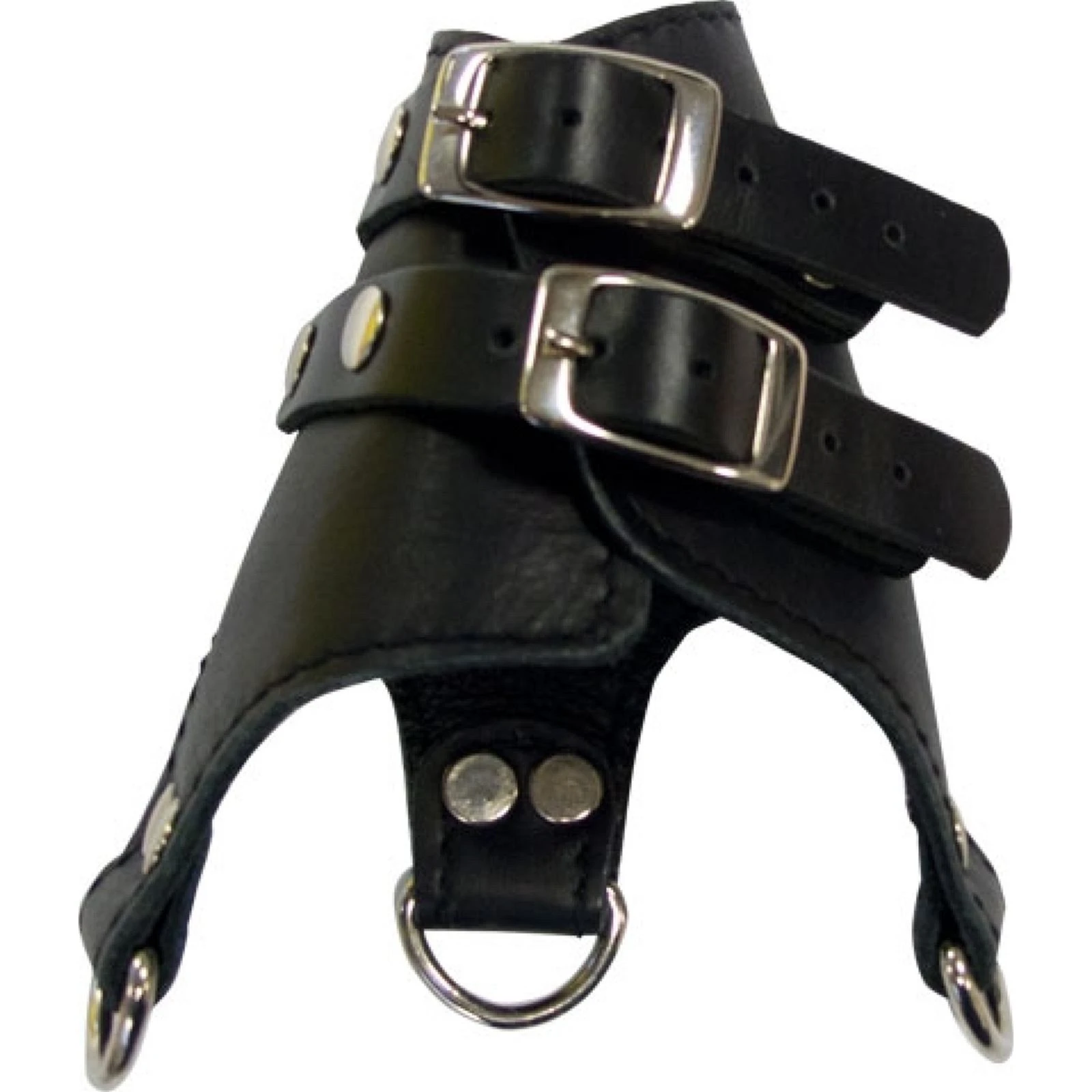 In die drei vernieteten D-Ringe kannst du Gewichte hängen die du hier findest, um den Parachute zu beschweren, damit Hoden und Penis straff nach unten gezogen werden.