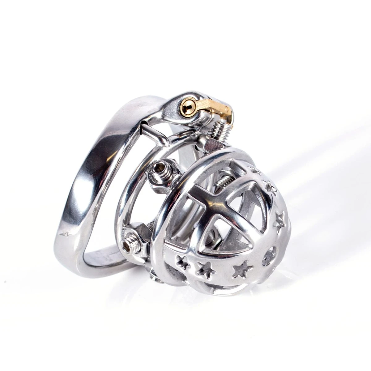 Als wäre ein Peniskäfig aus Metall nicht schon restriktiv genug, können beim »Paincage« schon die kleinsten Anzeichen einer beginnenden Erektion unmittelbar bestraft werden. Die 6 spitzen Schraubdornen können mit dem beiliegenden Innensechskantschlüssel (oder jedem handelsüblichen „Inbusschlüssel“ passender Größe) enger oder weiter gedreht werden je nach erforderlichem Durchmesser des besten Stücks. Je enger die Schrauben gedreht werden, desto eher quittieren sie eine Anschwellung des Penis mit einem stechenden Schmerzreiz, was sich wunderbar quälend als zusätzliches Reizelement ins Keuschheitsspiel einbauen lässt. Durch die Schrauben eröffnen sich viele weitere Spielarten, so kann man zum Beispiel bei Ungehorsam jede Schraube um eine viertel Umdrehung enger stellen, bis Subbie lernt, was Gehorsam bedeutet. 😉