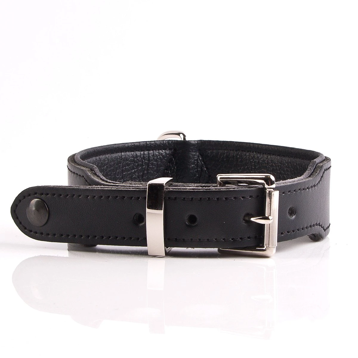 Das Halsband »Narrow M« macht sich nicht nur gut als schmückendes Accessoire, passend zur BDSM-Garderobe. Es bietet sich auch hervorragend als stabiles Halsband für Petplay und alle anderen Arten von BDSM- und Bondagespielen an. Das Obermaterial besteht aus glattem, beschichtetem Spaltleder und gewährleistet eine einfache Reinigung, da man es einfach mit einem feuchten Tuch abreiben kann. Das Untermaterial des Halsbandes besteht aus Kunstleder und verfügt über eine leichte Struktur, was die Tragbarkeit verbessert. Die Kanten der Innenseite sind sanft abgerundet, damit das Halsband nicht einschneidet.