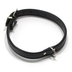 Das Material ist doppelt vernäht, was edel wirkt und zugleich Haltbarkeit gibt. Das Halsband ist aus Kunstleder gearbeitet und somit vegan. Am Gurtende hat das Halsband einen Metallbeschlag, als ist Zierde und Schutz zugleich. Es ist in zwei Längen erhältlich.