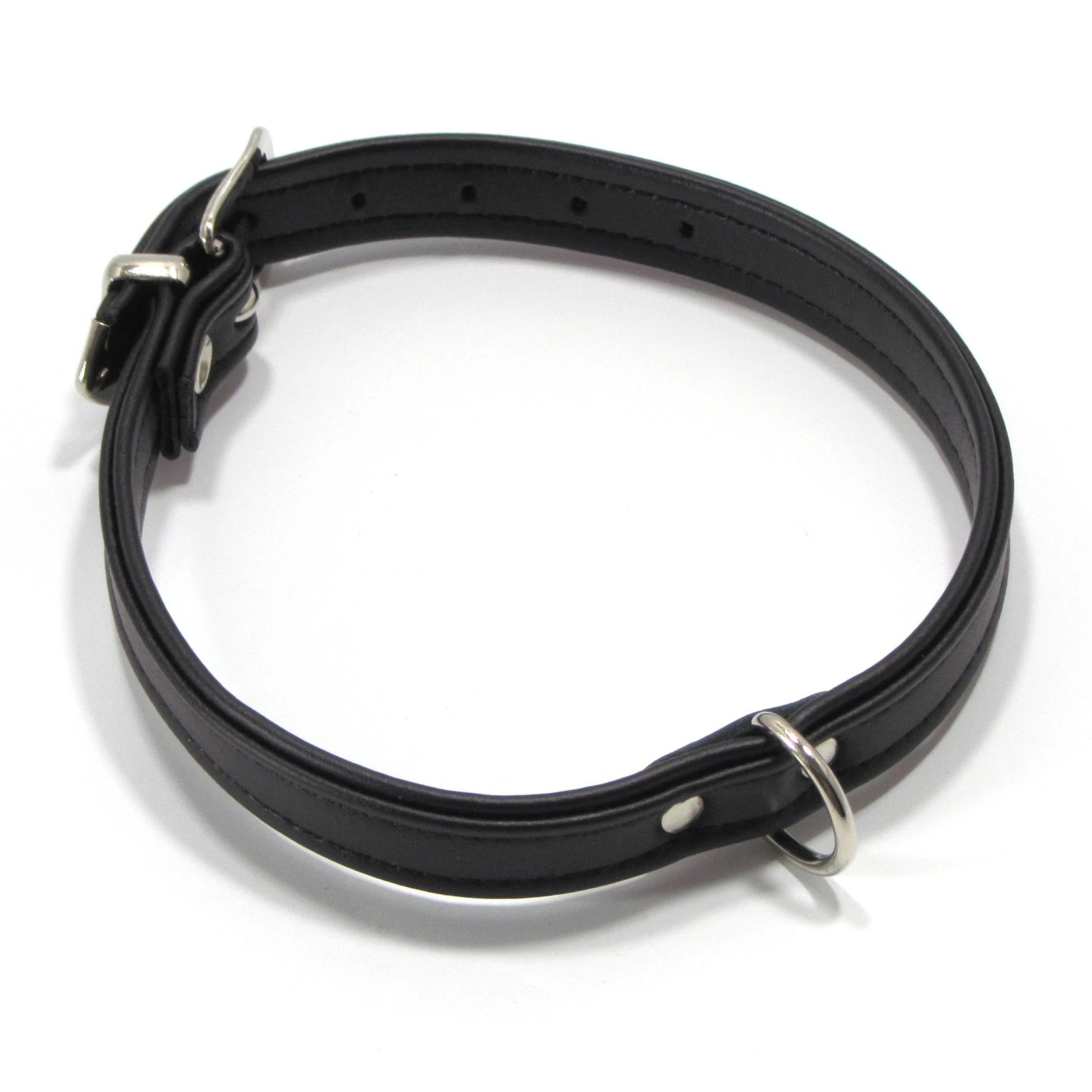Sehr robustes und doch unauffälliges und dünnes Halsband. Der stabile D-Ring ist trotz des eher dezenten Aussehens vom Halsband nicht nur zu Dekozwecken verwendbar. Ganz im Gegenteil, es ist sehr stabil, wenn du eine Führleine einhängen und auch mal dran ziehen möchtest. Die Nieten gehen durch das komplette Material, um optimalen Halt zu bieten; ebenfalls die Niete auf der Rückseite, die die Schnalle hält.