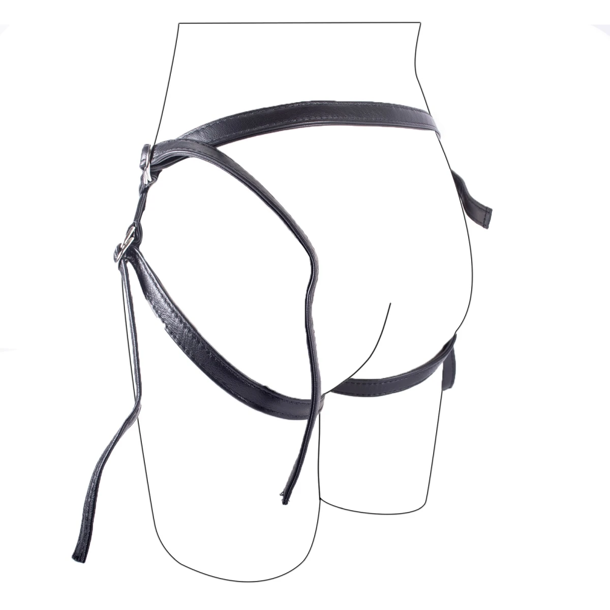 Das Strapon Harness hat seinen Namen von den beiden Gurten, die links und rechts an der Vagina vorbeilaufen. So hat sie (oder wer auch immer) Zugang zu ihren Genitalien, während sie das Harness samt Dildo während dem Pegging trägt. Die Gurte werden mit Hilfe von Doppel-D-Ringen geschlossen. Somit lässt sich der Gurt stramm anziehen und der Strapon sitzt bei jeder Figur bequem und fest.