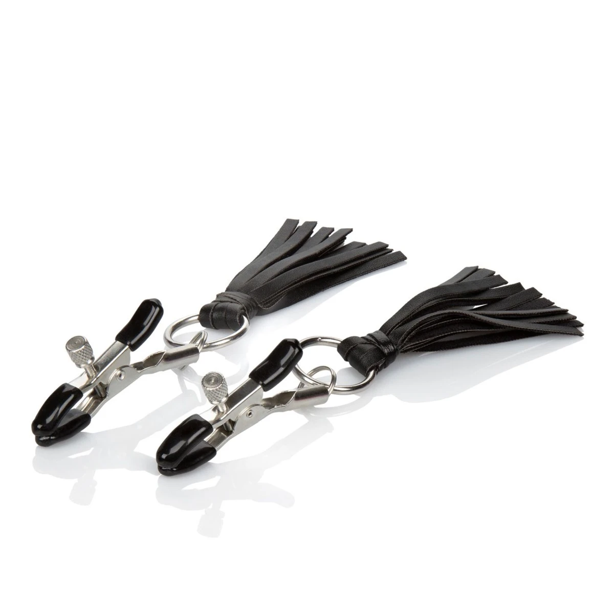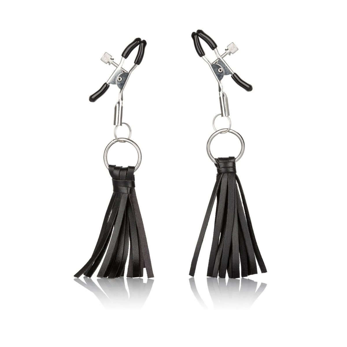Die schmalen, verstellbaren Nippelklemmen eignen sich nicht nur dazu, dein frivoles Outfit aufpeppen. Durch die Justierbarkeit der Klammern kann der Halt so sanft eingestellt werden, dass du die Klemmen als aufreizenden Schmuck tragen kannst, der die Blicke auf sich zieht. Die Kunstlederquasten streichen sanft über deine Haut.