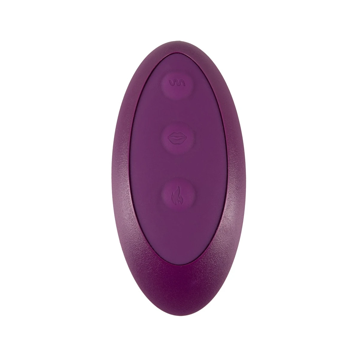 Die zwei anatomisch angeordneten Stimulationswellen des »vibepad 2« stimulieren gleichzeitig Vulva, Klitoris und Anus mit getrennt steuerbaren Motoren. Die vordere, größere Welle hat eine integrierte Vibro-Zunge mit 7 Leckmodi. Die kleinere Welle punktet mit einer Wärmefunktion (max. 55°C). Alle Funktionen sind separat steuerbar.