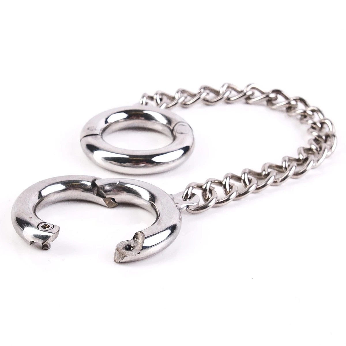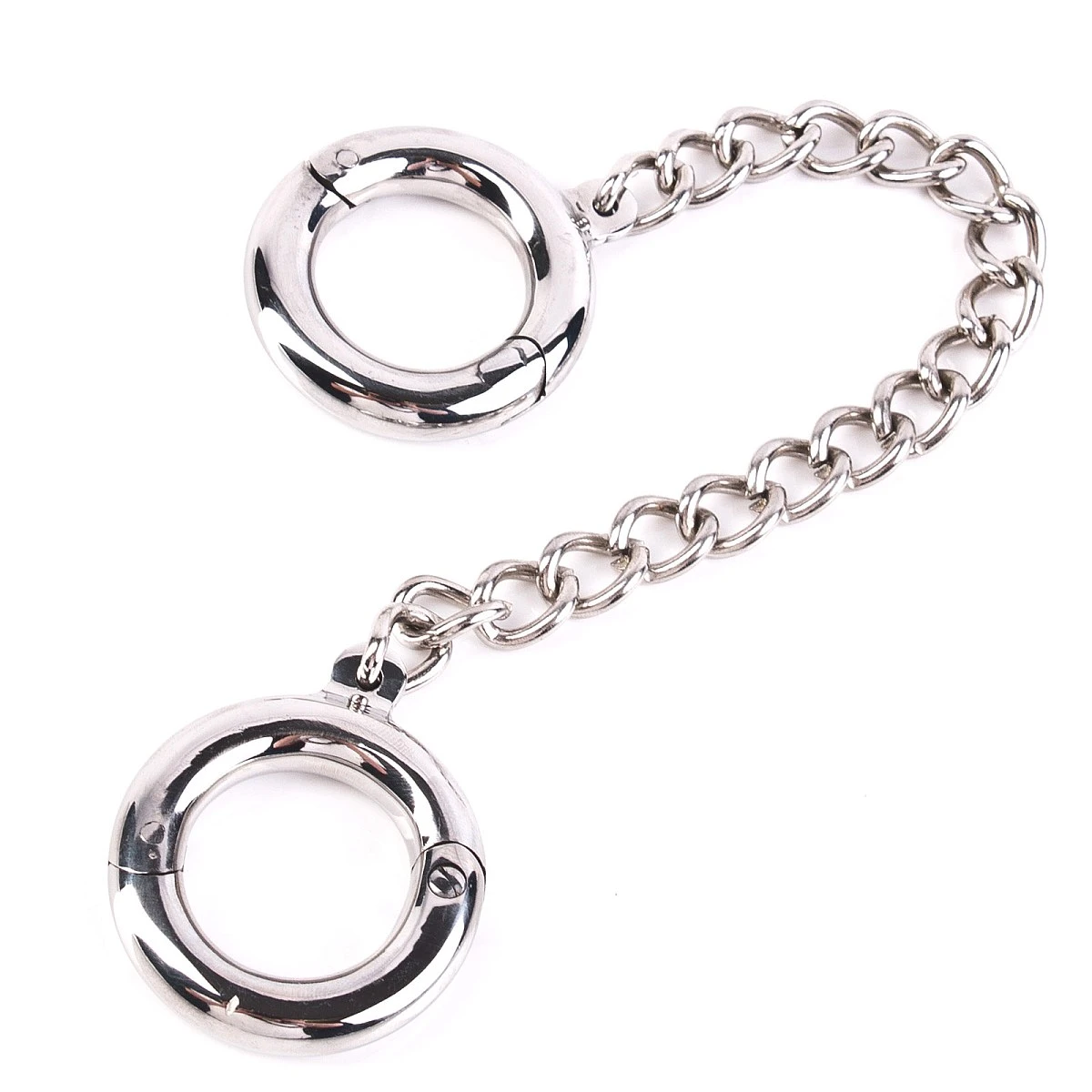 Die massiven runden Zehenschellen aus Edelstahl haben keine Ecken und Kanten. Die Kette dazwischen machen sie ein wenig bequemer, aber davon rennen wirst Du Deinem Meister oder Deiner Mistress damit nicht. Sie sind etwas für Fußfetischisten und für Liebhaber.