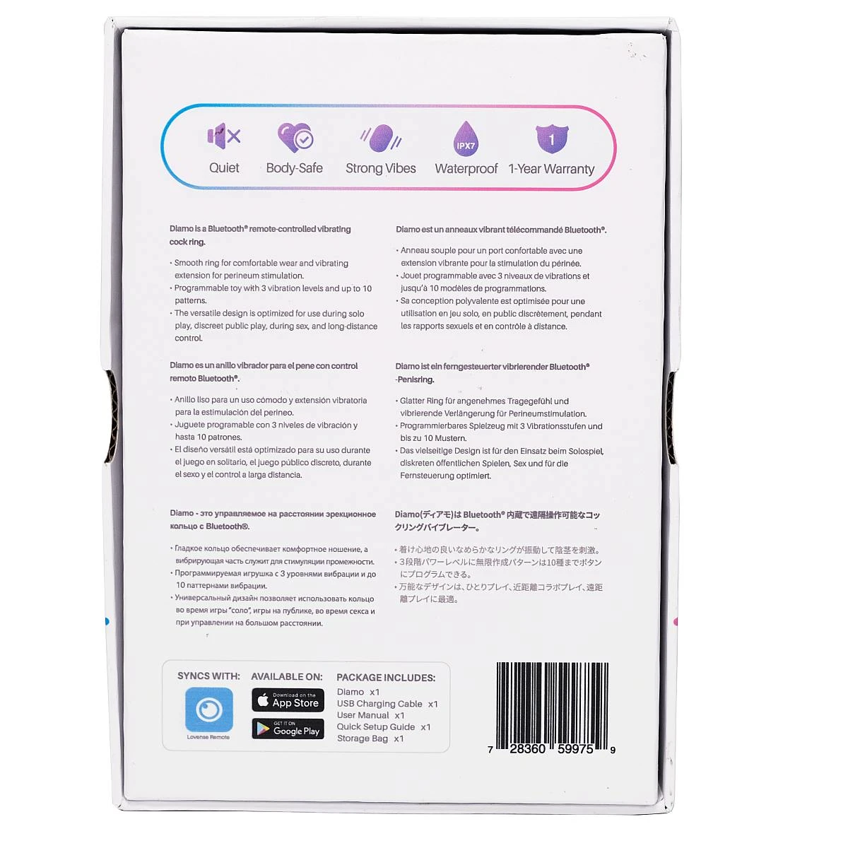 Der »Diamo« ist bequem per Smartphone, Tablet, iPod oder iPad steuerbar und zählt zu den leistungsfähigsten Vibratoren mit Fernbedienung. Du entscheidest selbst, ob Du Deinen Cockring lieber selbst steuerst oder die Kontrolle abgibst und Dich auch über große Distanzen „fernbedienen“ lässt. Der »Diamo« bietet sich ohne Einschränkungen auch für Fernbeziehungen an. Die App, die Du kostenlos im App Store herunterladen kannst, ermöglicht eine individuelle Steuerung der Vibrationsstärken und Muster, die Erstellung eigener Muster sowie die Intensitätsabhängigkeit Deiner Lieblingsmusik oder die Steuerung in Abhängigkeit zur Umgebungslautstärke.