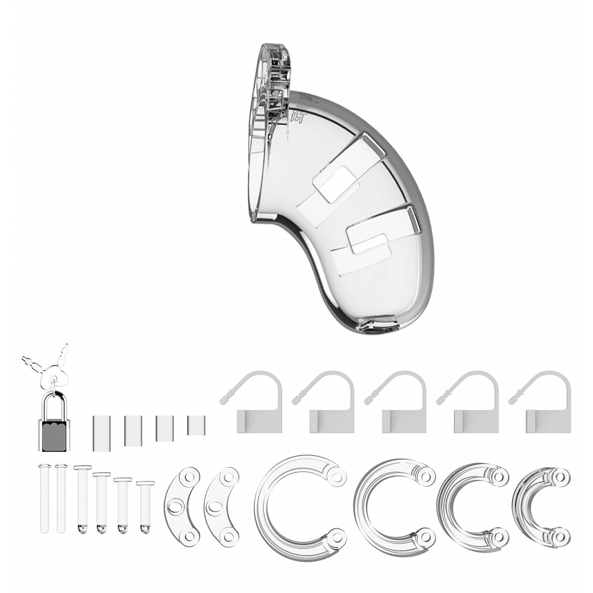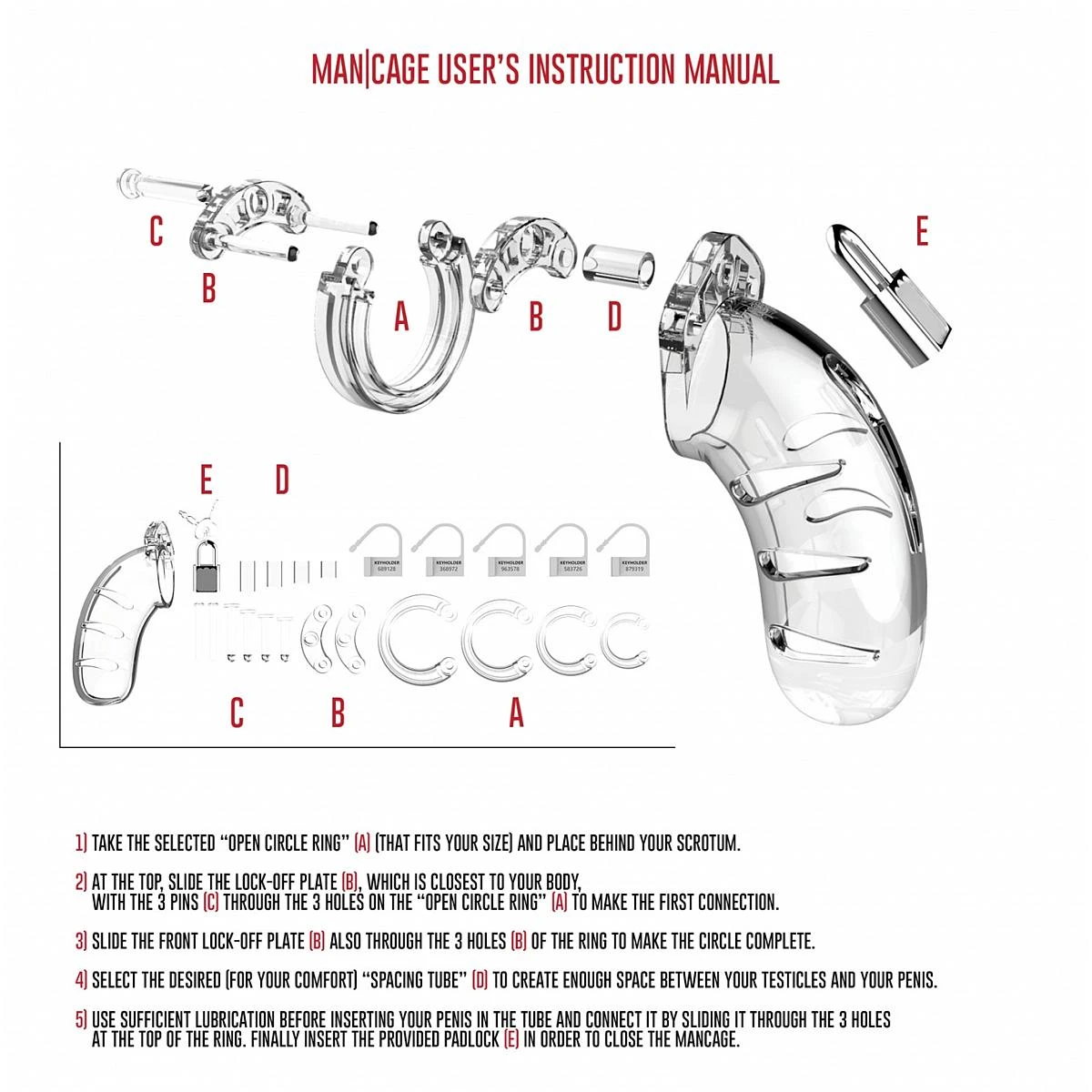 Der »ManCage«-Peniskäfig ist ein Keuschheitskäfig aus bruchsicherem Polycarbonat-Kunststoff, der 100% wasserfest ist. Du kannst ihn also auch zum Duschen tragen. Er lässt sich durch mehrere unterschiedlich große Hodenringe und Distanzstücke genau an Deine Bedürfnisse anpassen. Der innere Durchmesser des Peniskäfigs beträgt dabei 3,5 cm, was für die meisten Anforderungen sehr gut passt auch für diejenigen, die es gerne etwas enger hätten ;-). Für etwas besser bestückte Kerle empfehlen sich die Modelle mit größerem Innendurchmesser von 4,5 cm. Dies sind die Modelle »ManCage« Model 05 und »ManCage« Model 06