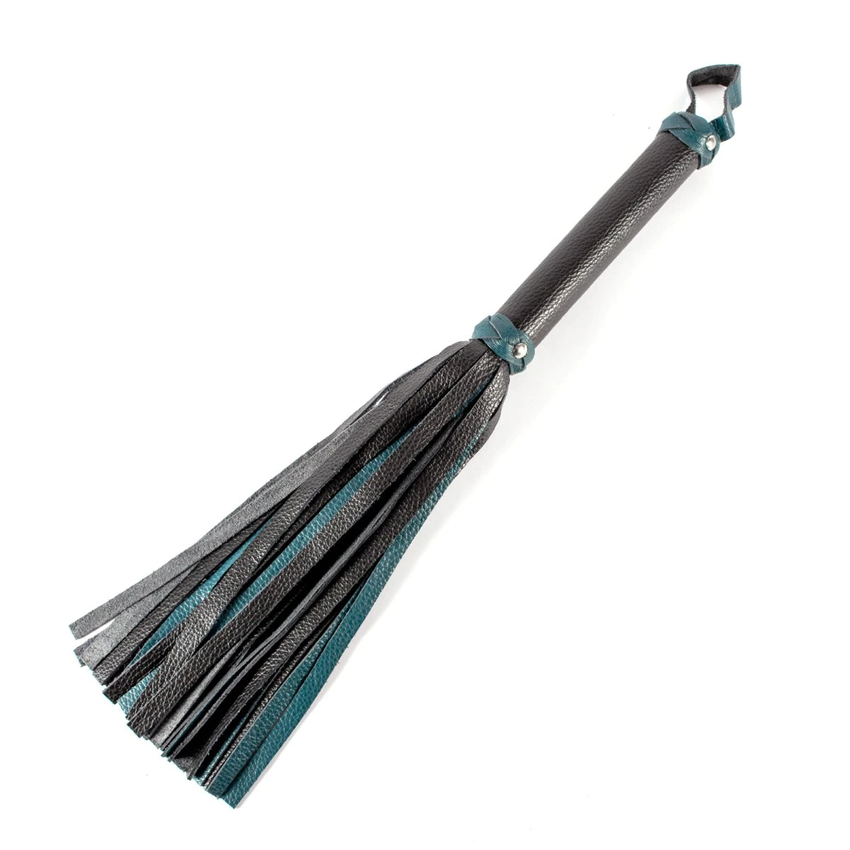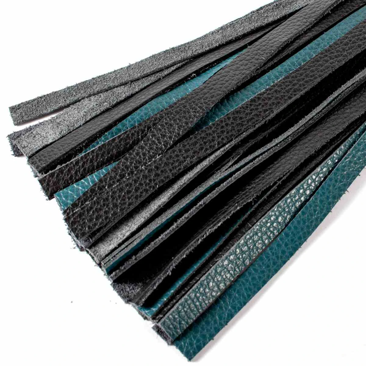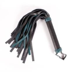 Der schwere Flogger aus ausgesuchtem Leder ist aus schwarzem und petrolfarbenem, kräftigem Rindsleder. Hier spielst du auf Nähe, kannst den Flogger auch gut nutzen, wenn du Subbie über’s Knie legst. Er ist hervorragend zum Aufwärmen und fürs Impact Play im Intimbereich. Das Leder ist weich und angenehm.