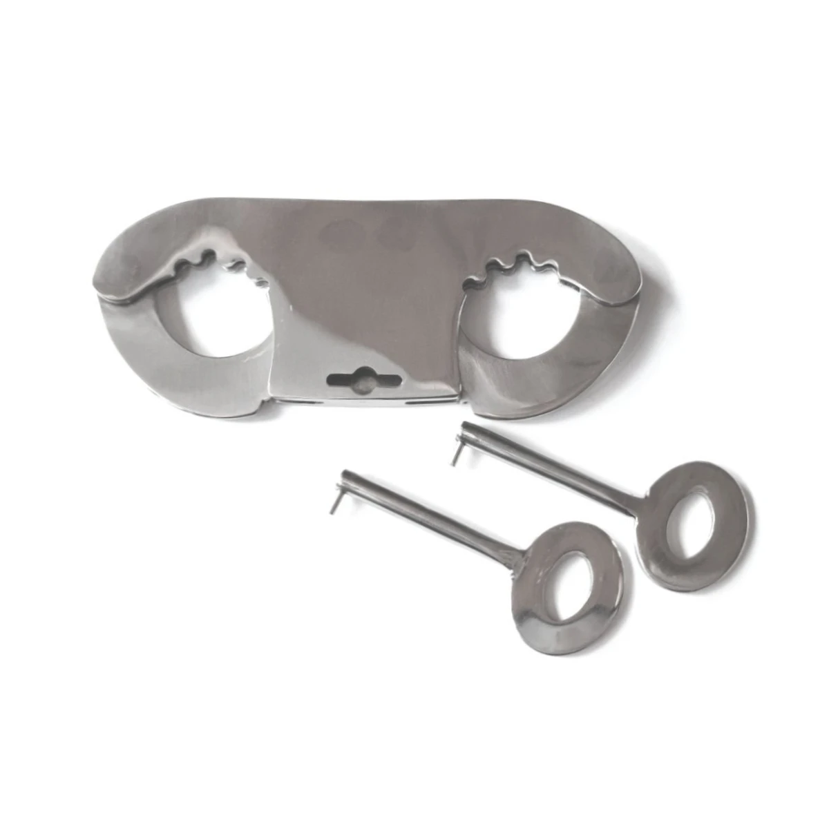 Die Daumenschellen sind auch als „Schloss“ und Verbindungsglied zwischen Fesseln aus Leder geeignet.