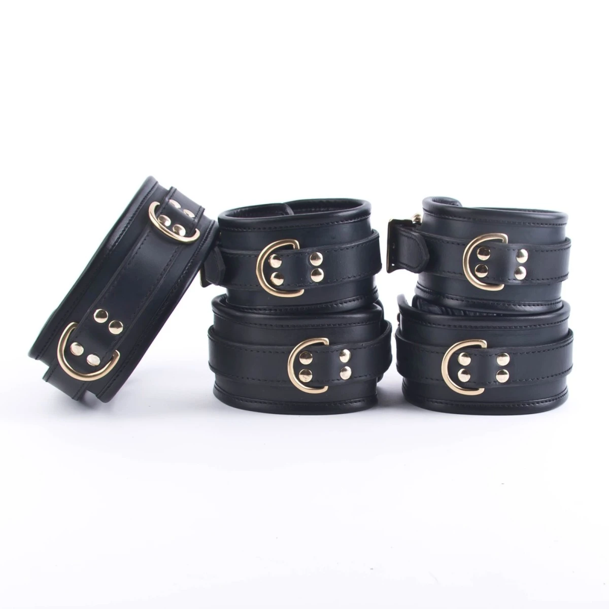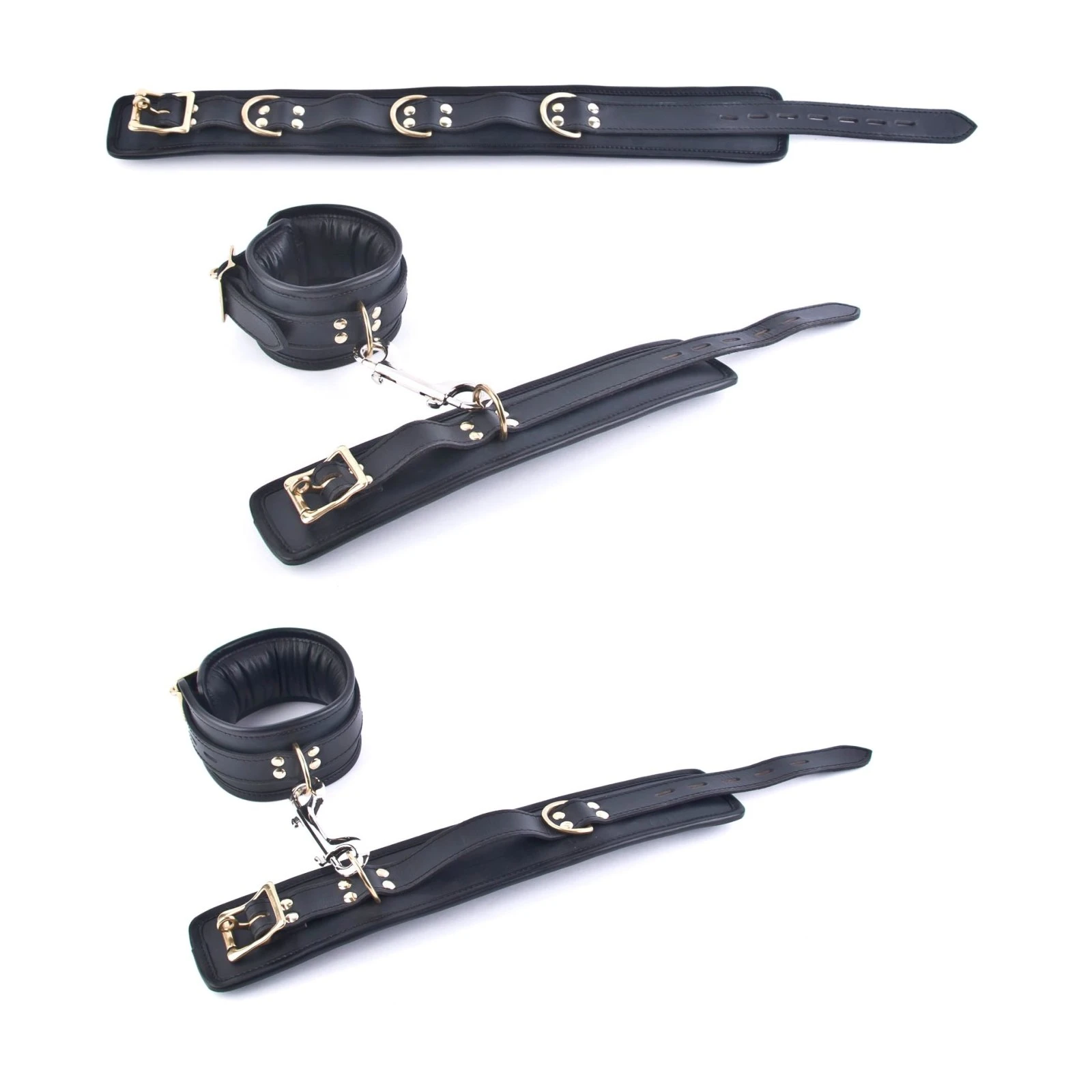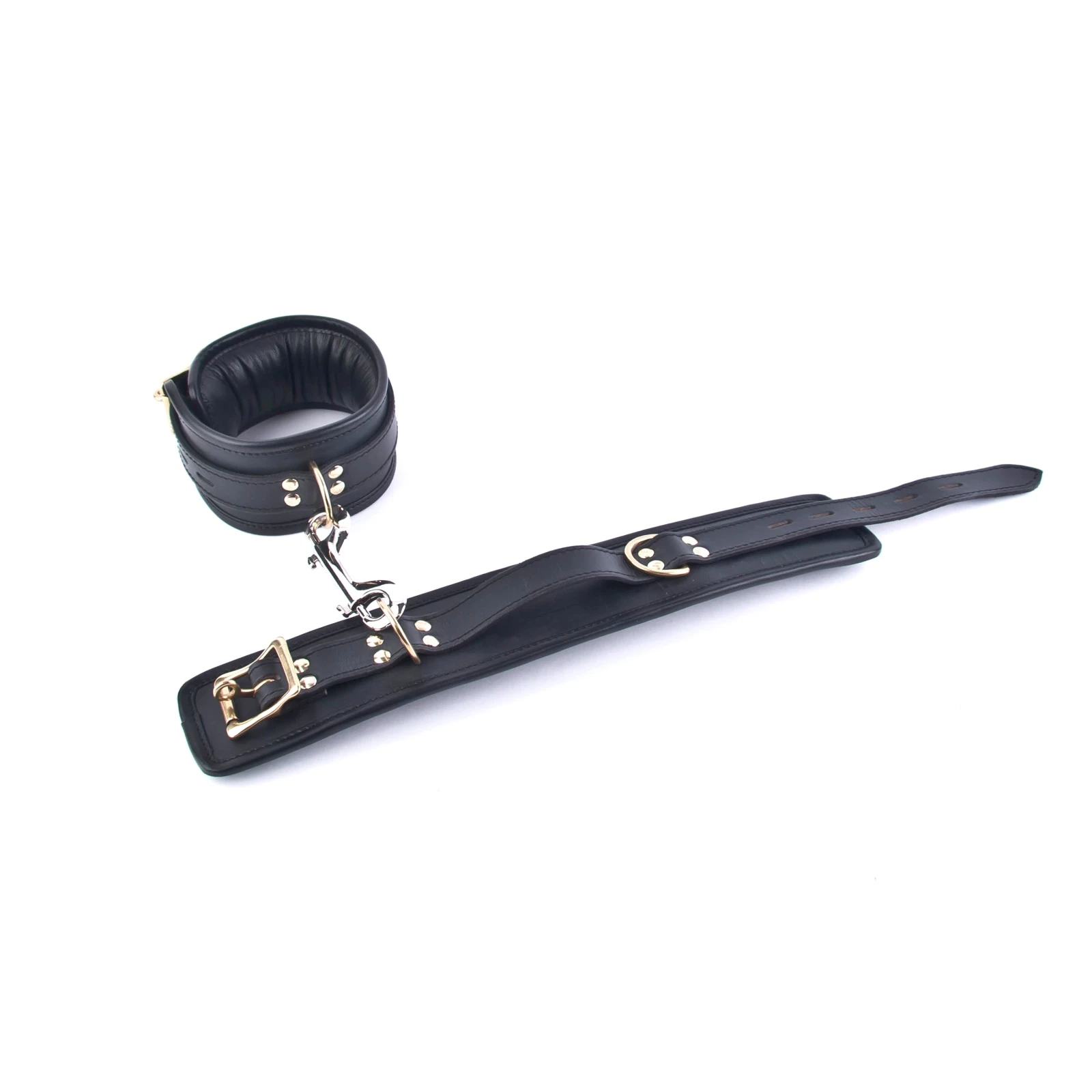 Robustes Fesselset mit messingfarbenen Beschlägen