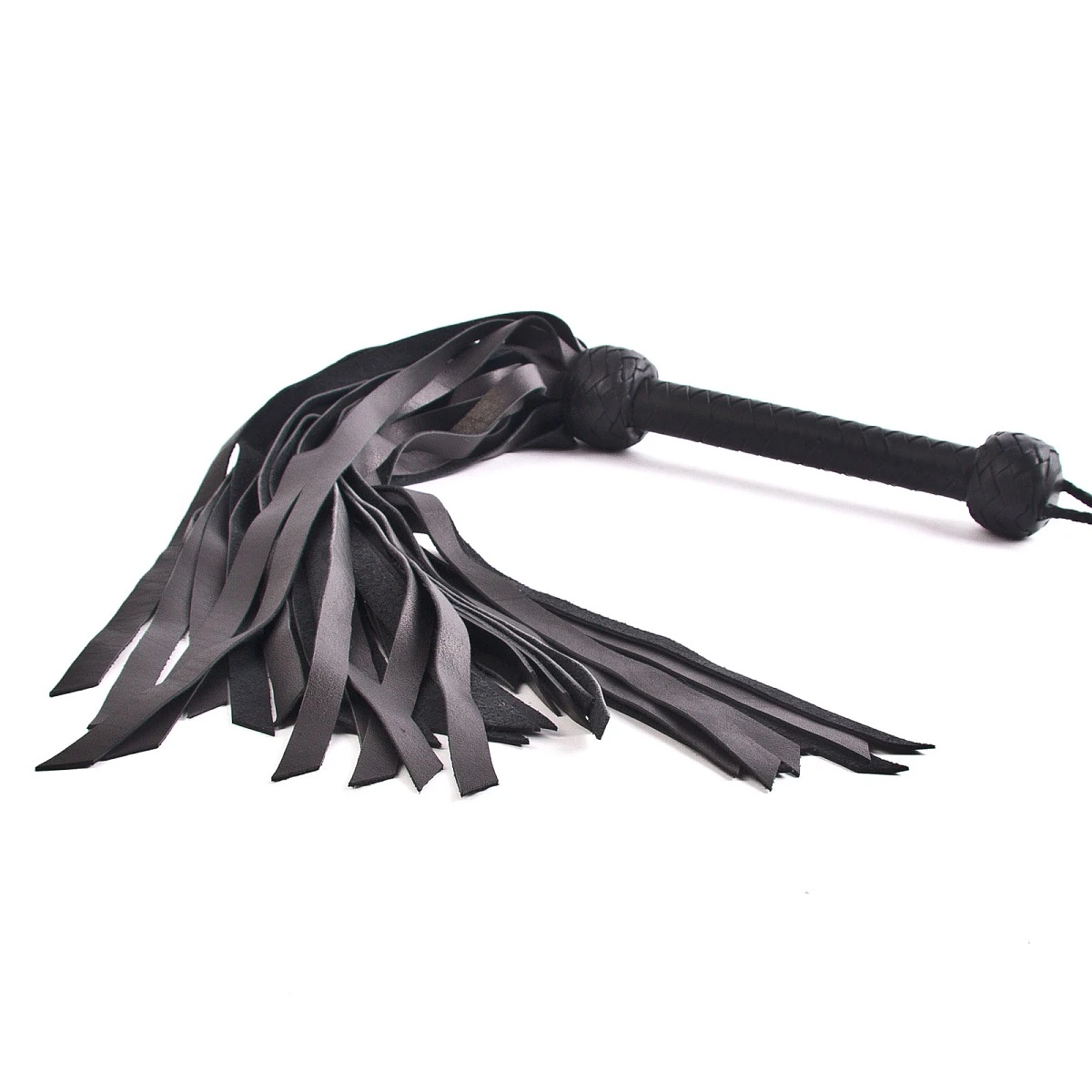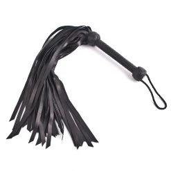 Der Griff besteht aus einem harten, starren Kern mit einem Durchmesser von 2,4 cm. Dadurch liegt der Flogger sehr gut in der Hand. Die Griffverdickungen an beiden Enden des Griffes geben Dir zusätzlichen Halt. Am Ende des Griffes befindet sich eine geflochtene Lederschlaufe, die Du zum Aufhängen des Floggers oder als Handschlaufe nutzen kannst.