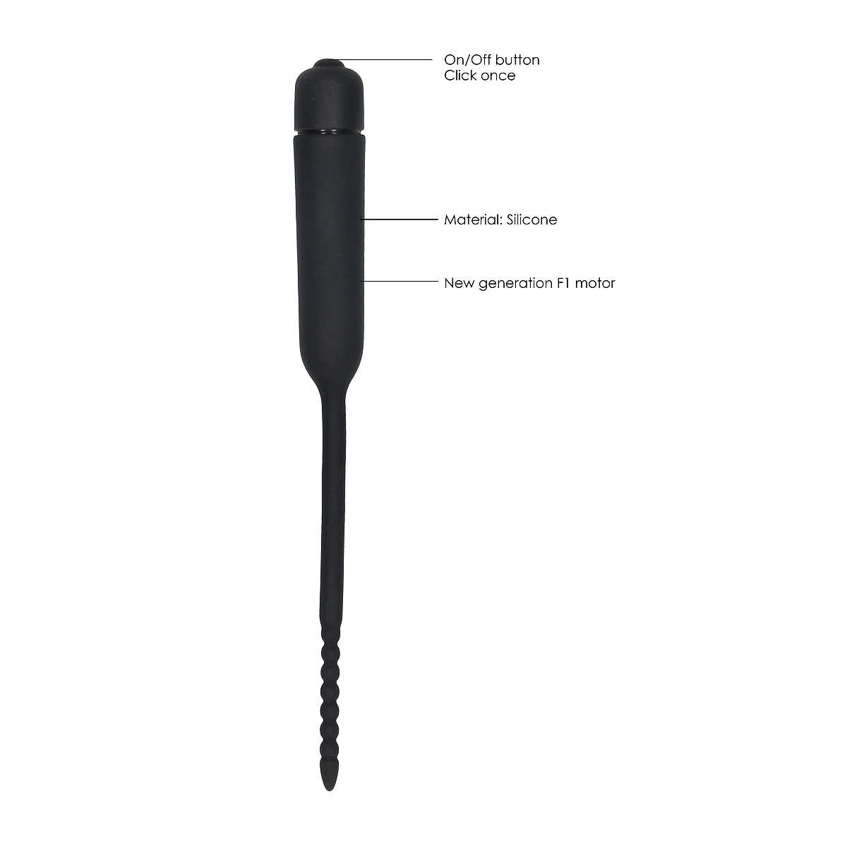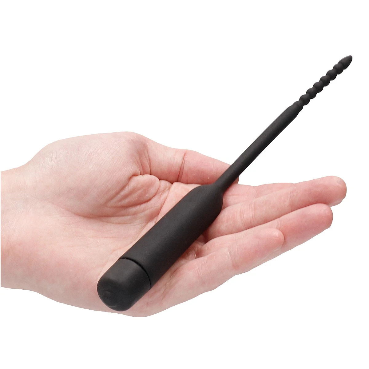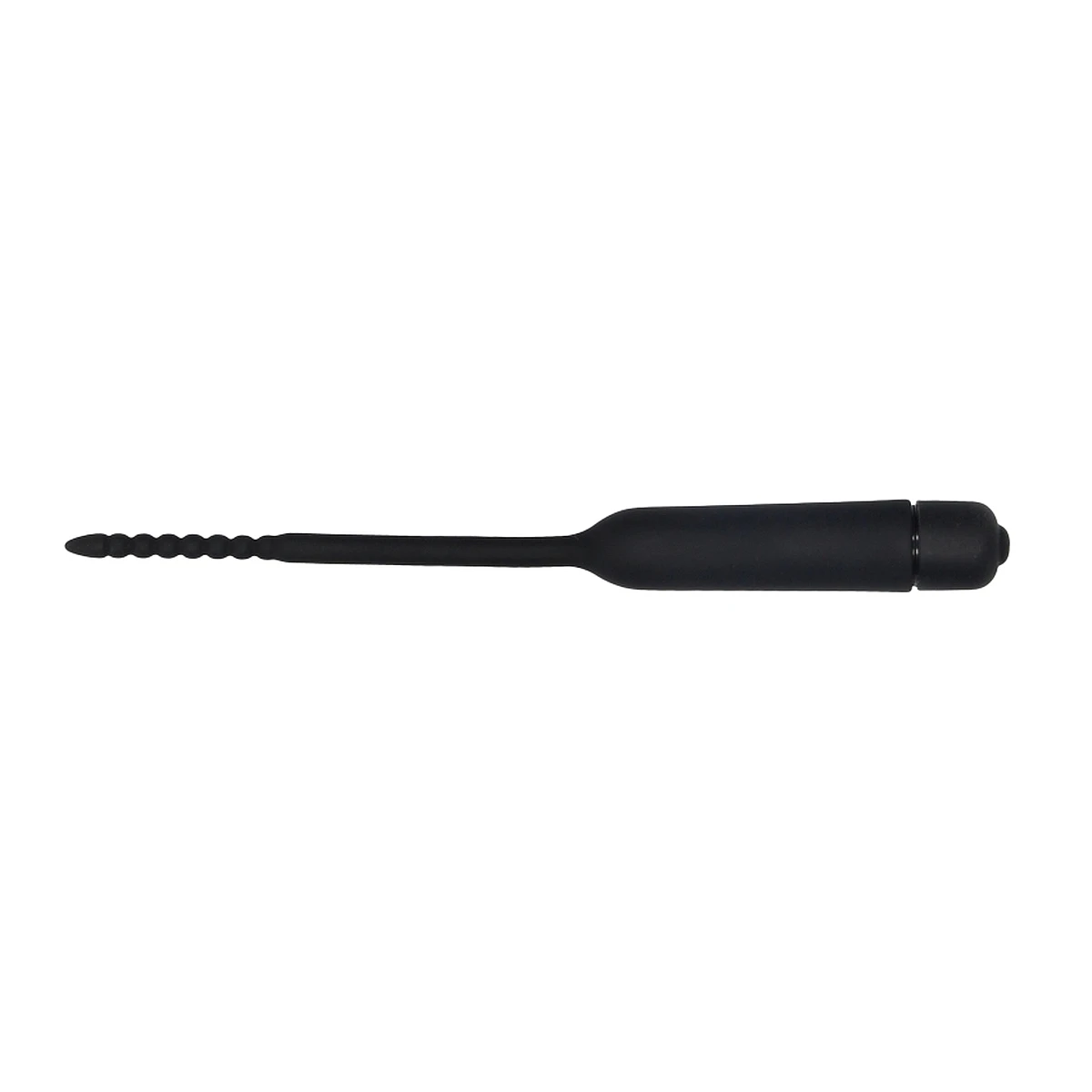 Der vibrierende Harnröhren-Dilator »Vibrating Bullet Plug« sorgt mit seinem kräftigen Vibrationsmodus für intensive Stimulationen in deiner Harnröhre. Er vibriert dabei mit unglaublichen 1.200 RPM bei dennoch flüsterleisen 50dB. Durch die abgerundete Spitze lässt sich der Dilator einfach einführen, während die Kugelstruktur für zusätzliche Stimulation sorgt. Die gewellte Spitze ist leicht biegsam, damit du zu stimulierende Partien mit Leichtigkeit erreichst. Die Vibration schaltest du über einen Drucktaster an der Griffoberseite ein oder wieder aus.