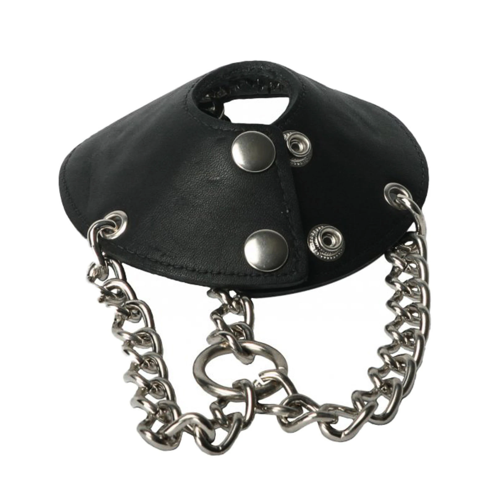 Unten sind drei Ketten befestigt. So kann man den Parachute durch Gewichte beschweren, damit Hoden und Penis nach unten gezogen werden.