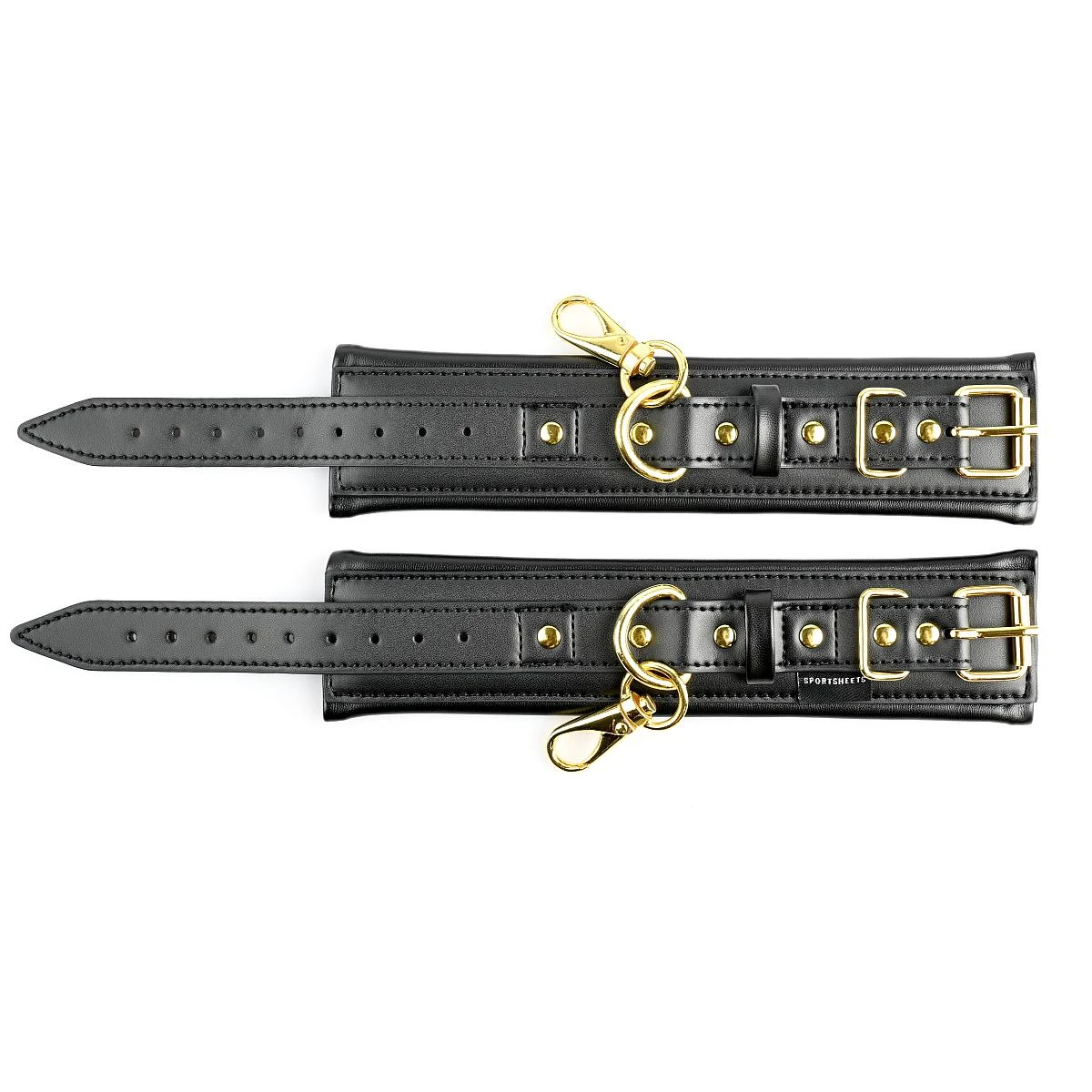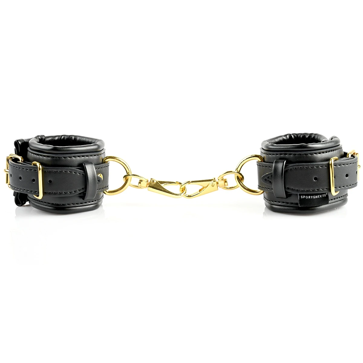 Handfesseln aus veganem Leder mit goldfarbenen Beschlägen von Sportsheets