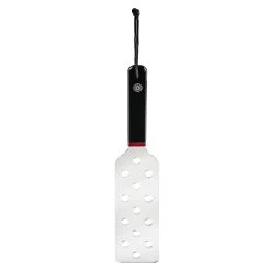 ACHTUNG! Das Paddel zeigt bereits seine Wirkung, wenn es „aus dem Handgelenk heraus“ benutzt wird. Acryl ist hart und gibt nicht nach. Daher eignet es sich nur zum Schlagen auf nackte Haut. Schlage damit nicht auf Gegenstände oder mit voller Wucht, dann kann es brechen. Acryl ist nicht kratzfest. Am besten sollte es abseits von scharfkantigen Dingen transportiert und gelagert werden, um es lange kratzerfrei zu halten.