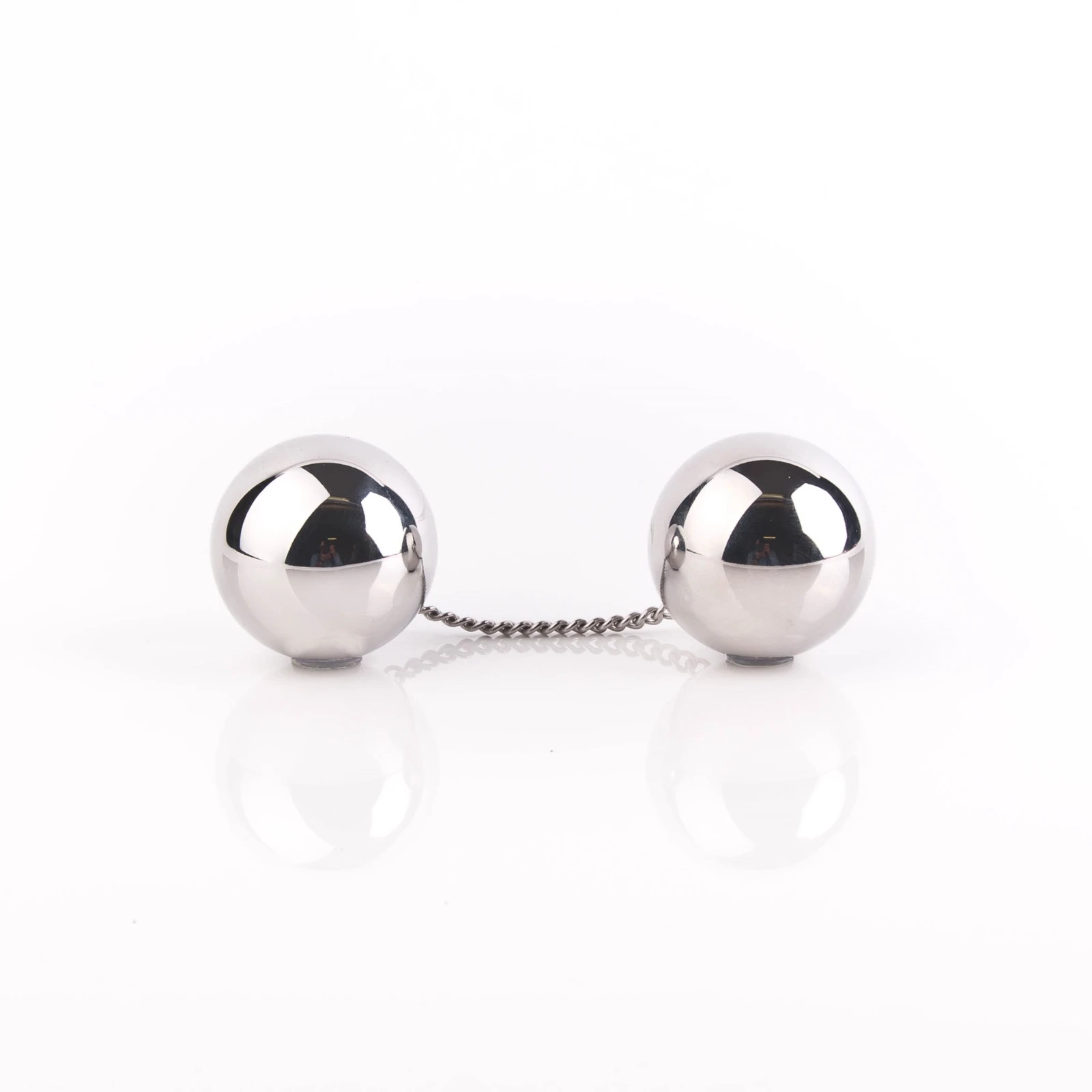 Die Love Balls Duo sind in 2 Größen lieferbar. Massive Kugeln aus hochpoliertem Edelstahl, verbunden mit einem 6 cm langen Kettchen, ebenfalls aus Edelstahl. Sie werden in einer kleinen Manufaktur speziell für uns in Deutschland gefertigt.