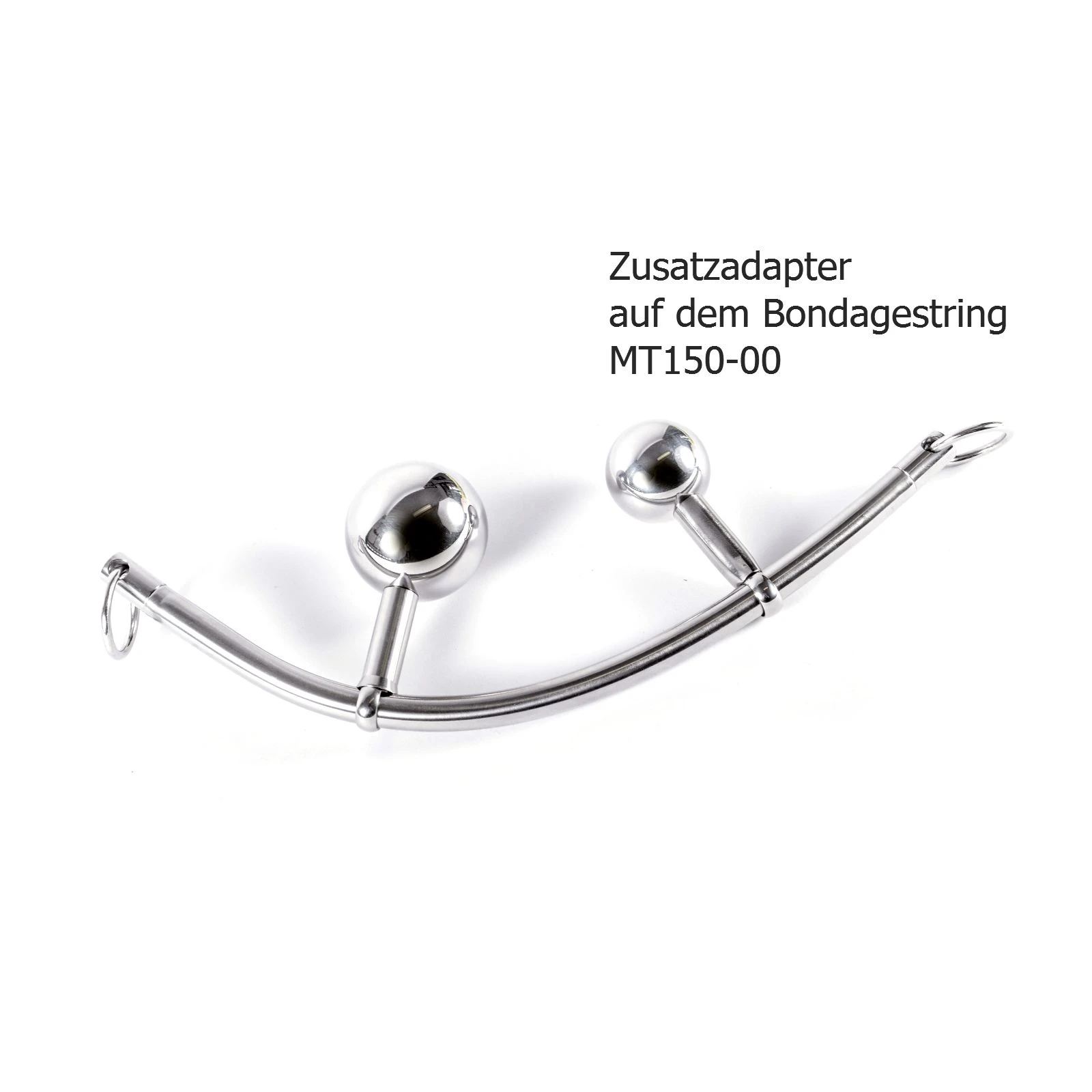 Der Zusatzadapter ist nicht auf der Stange arretierbar. Er kann mit allen Kugeln für die Bondage Strings kombiniert werden. Der Adapter und die Kugel sind aus poliertem, nickelfreiem Edelstahl.
