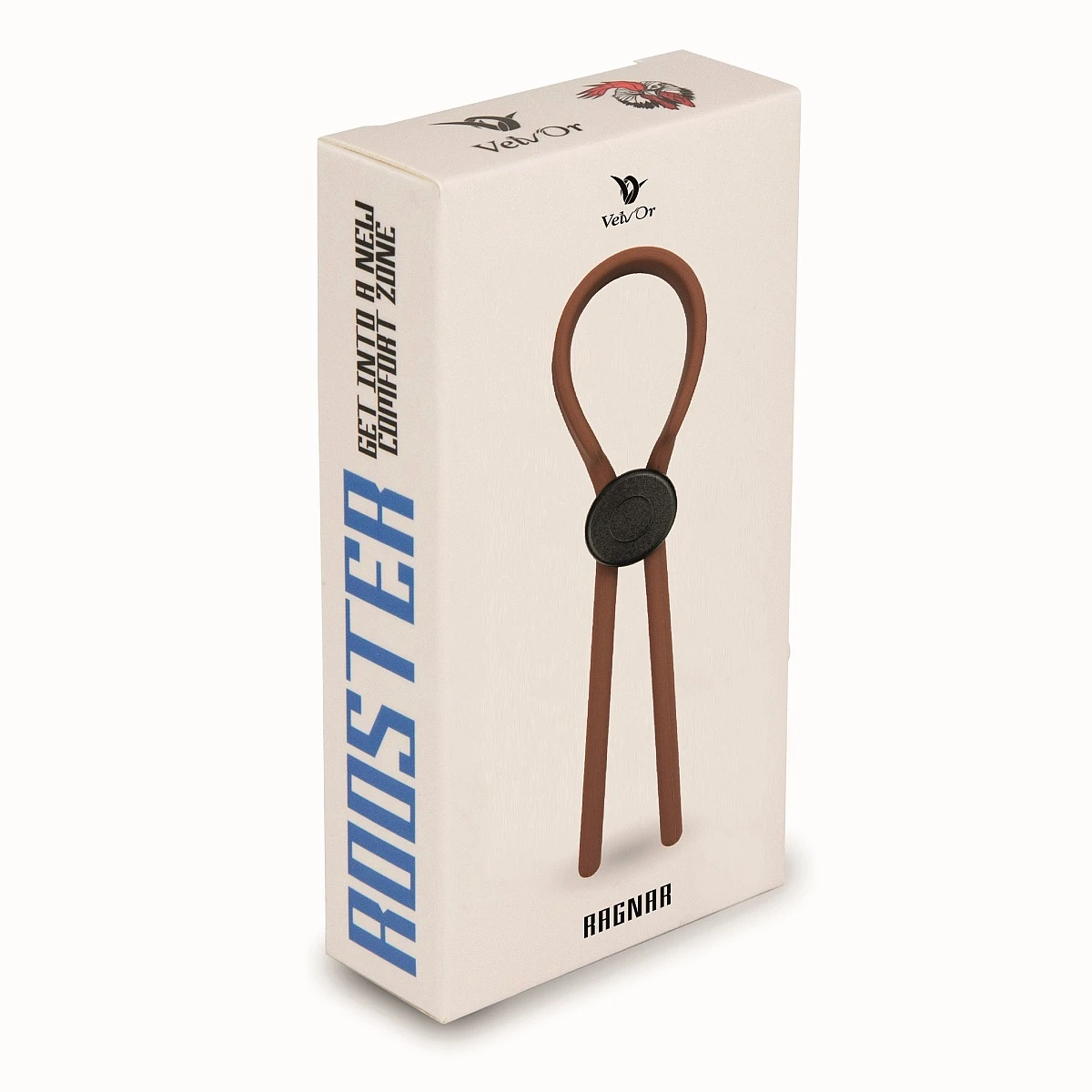 Der »Rooster Ragnar« von Velv’Or ist ein verstellbarer Penisring aus festem Platin-Silikon mit einem breiten Penis-/Hodenband kombiniert mit schlanken Schnüren zur Einstellung der gewünschten Festigkeit.